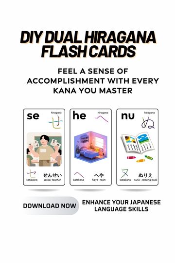 Unlock the secrets of the Japanese language and embark on a remarkable learning adventure with our Dual Hiragana & Katakana Flashcards. Immerse yourself in the captivating world of both Japanese scripts. These printable Japanese Flashcards are perfect for language learners, homeschoolers, anime fans, and anyone eager to delve into the beauty of the Japanese alphabet.